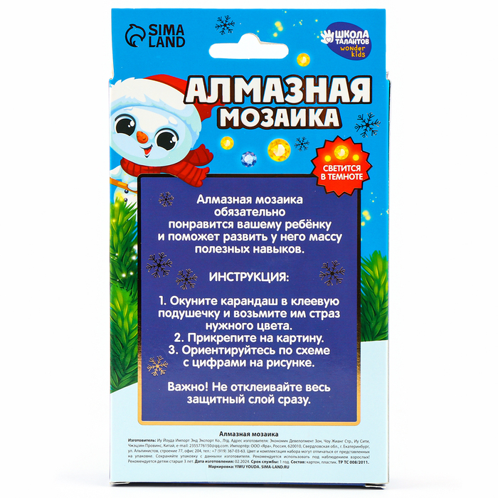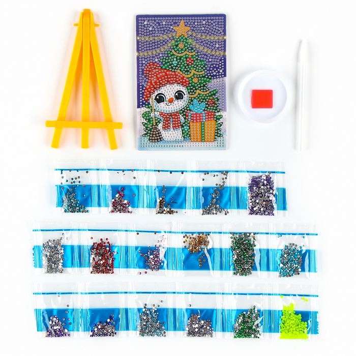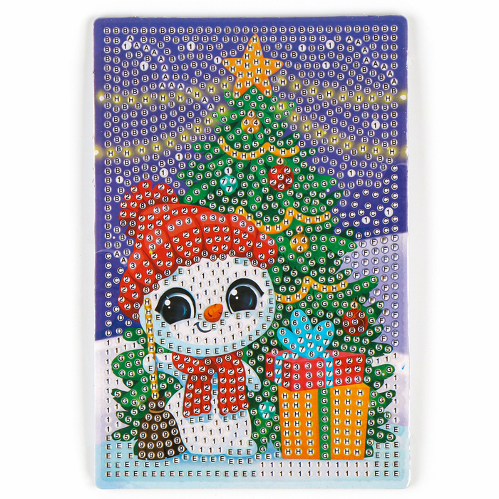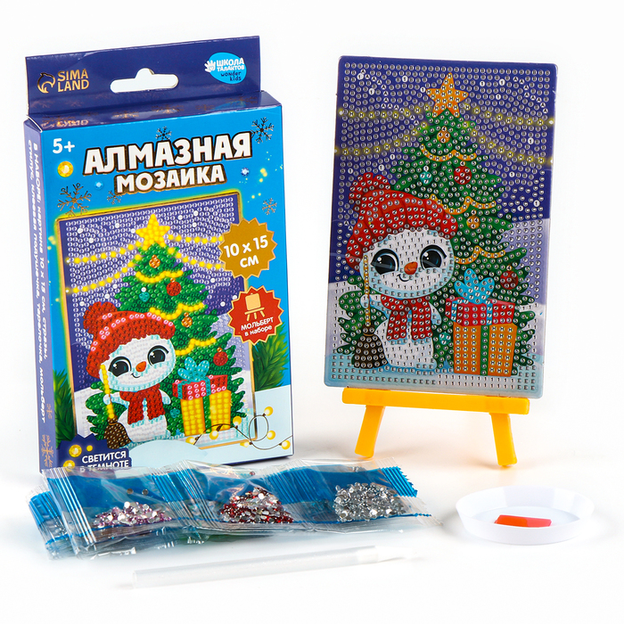 Алмазная мозаика на новый год для детей со светящимися стразами «Снеговик», 10 х 15 см, набор для творчества — Характеристики