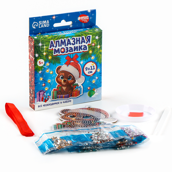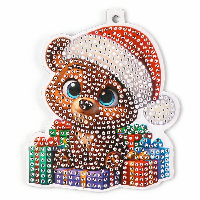 Алмазная мозаика на новый год на подвеске «Мишка с подарками», 9 х 11 см, набор для творчества — Характеристики