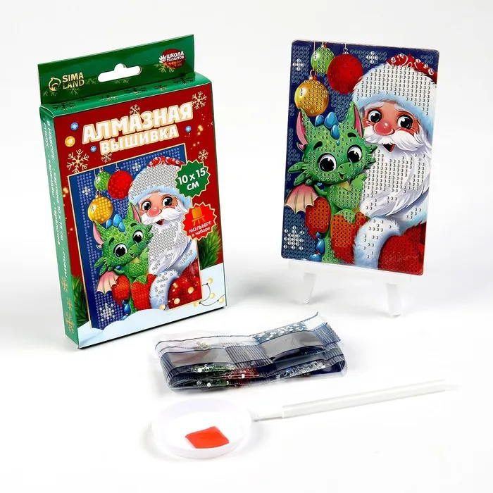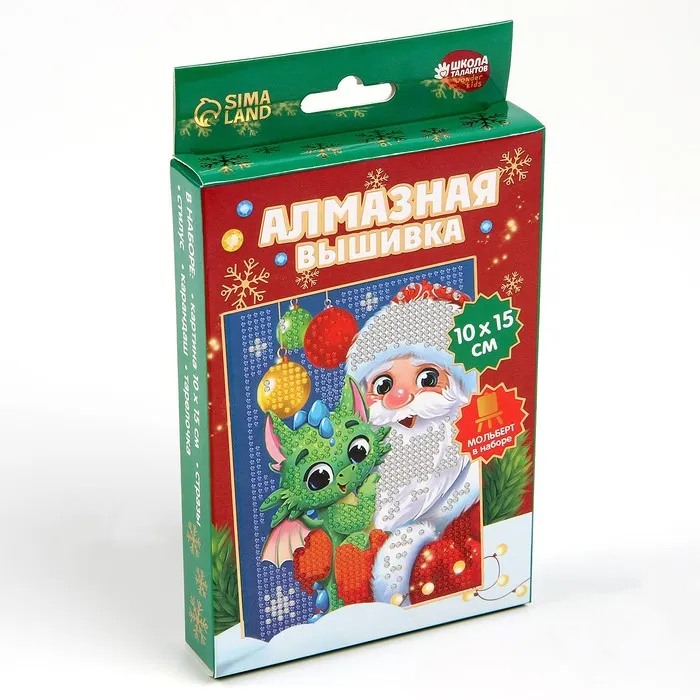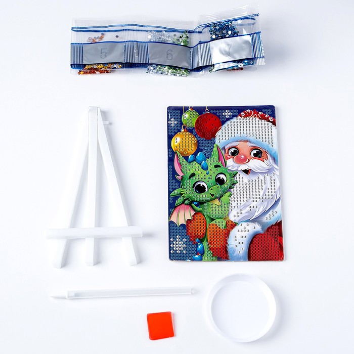 Алмазная мозаика на новый год с частичным заполнением для детей «Дедушка Мороз», 10 х 15 см, набор для творчества — Характеристики