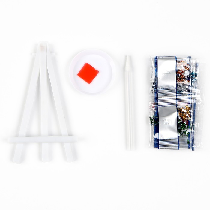 В наборе есть небольшой мольберт: с ним готовое творение можно расположить на полке или столе без дополнительных креплений. В таком интересном оформлении сверкающая картина будет выглядеть как предмет искусства.