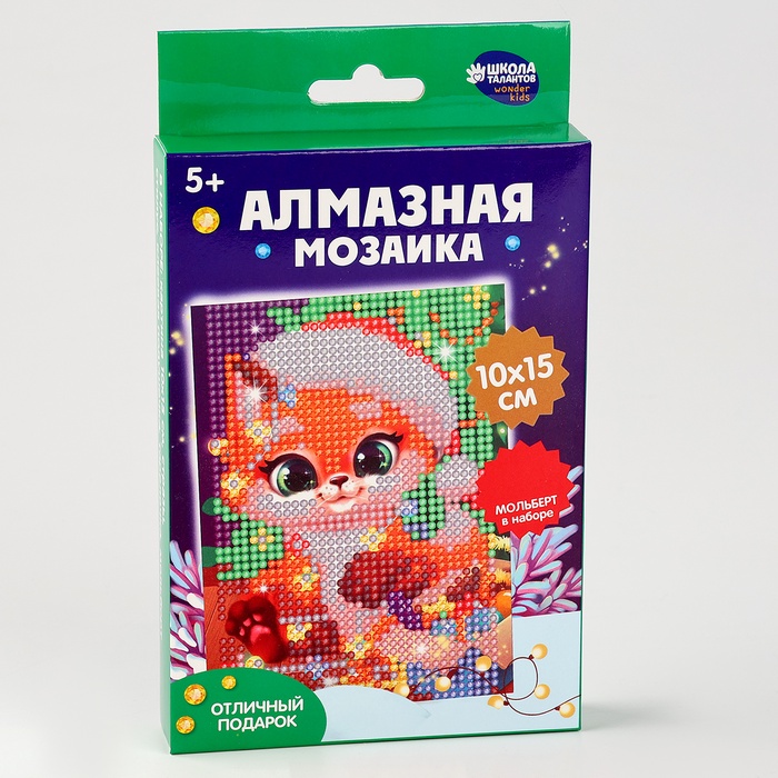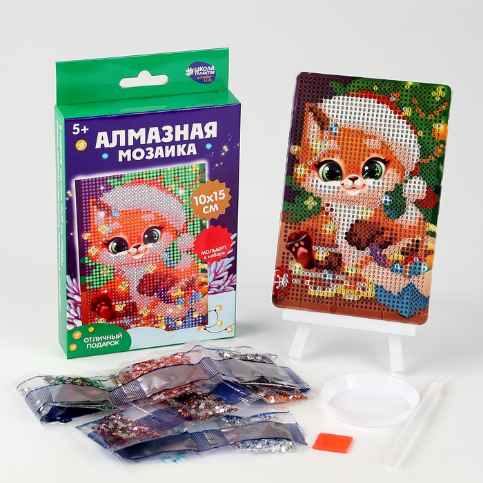 Алмазная мозаика на новый год с частичным заполнением для детей «Лисенок», 10 х 15 см, набор для творчества — Характеристики