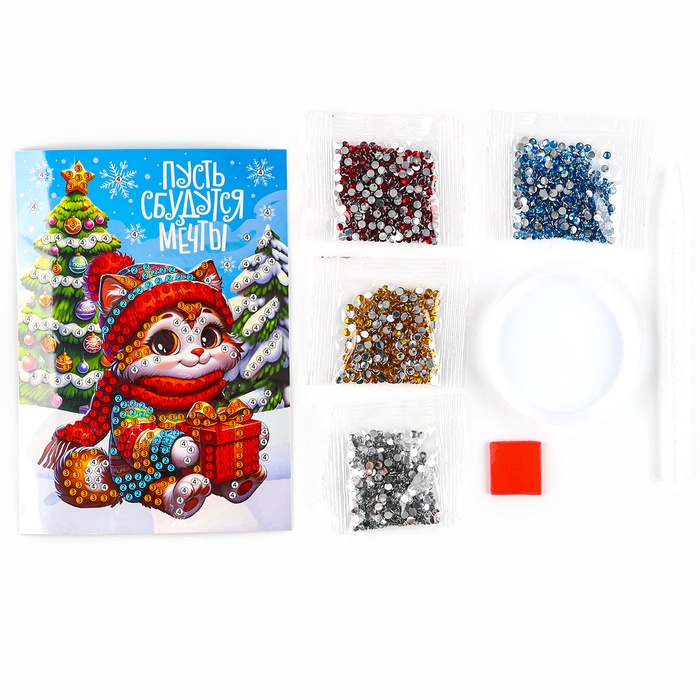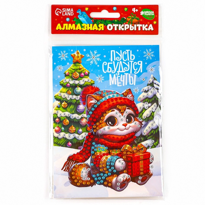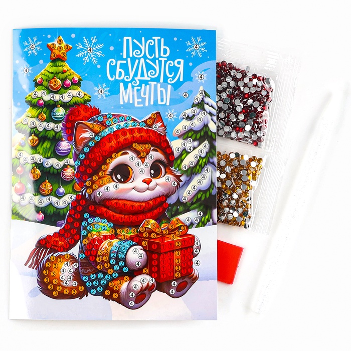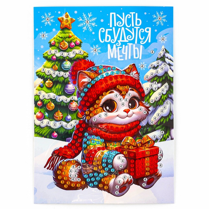 Алмазная мозаика на новый год с частичным заполнением для детей на открытке «Пусть сбудутся мечты», набор для творчества — Характеристики