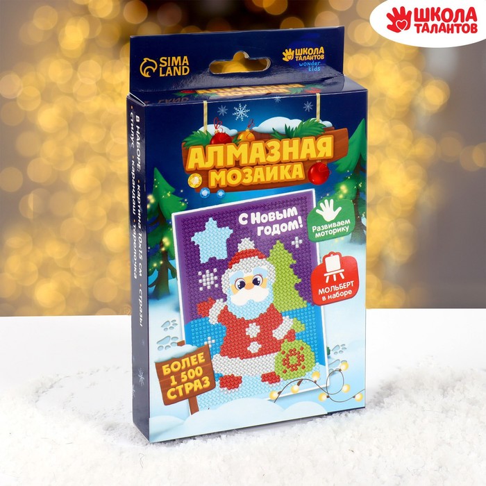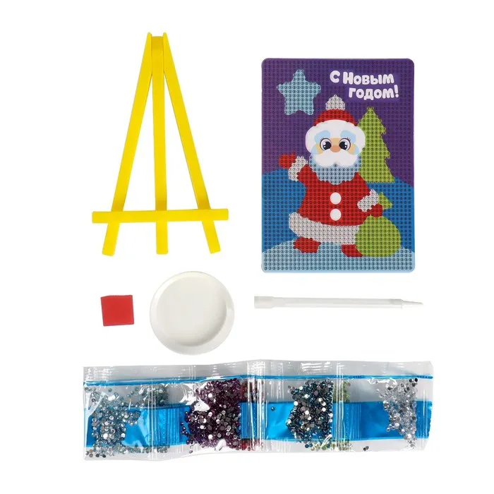 Алмазная мозаика на новый год с частичным заполнением для детей на подставке «Дед Мороз», 10 х 15 см, набор для творчества — Характеристики