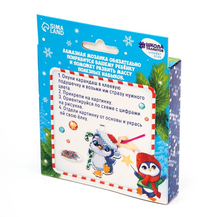 Алмазная мозаика на новый год с частичным заполнением для детей на подвеске «Пингвинчик», набор для творчества — Характеристики