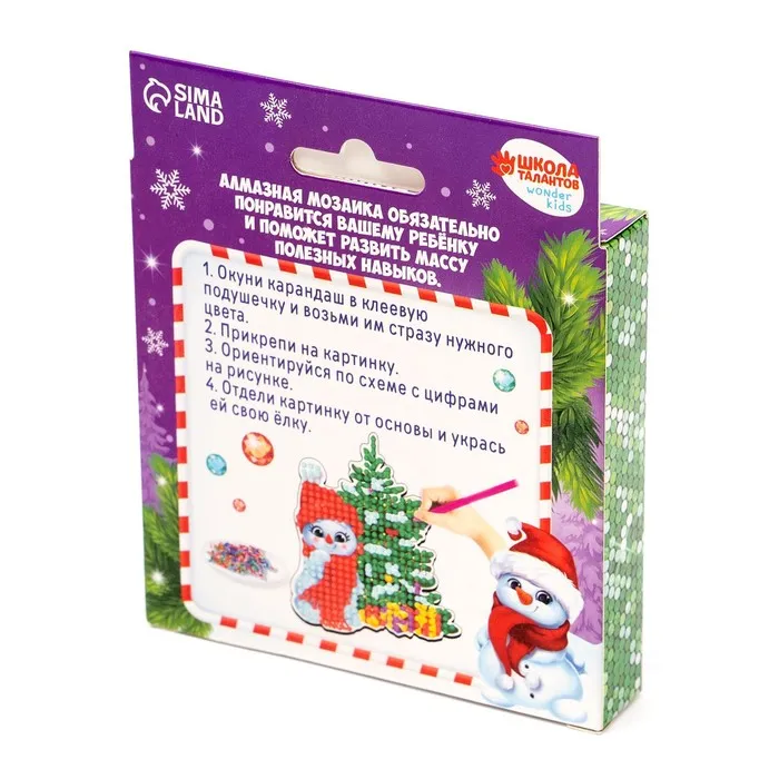 Алмазная мозаика на новый год с частичным заполнением для детей на подвеске «Снеговик», набор для творчества — Характеристики