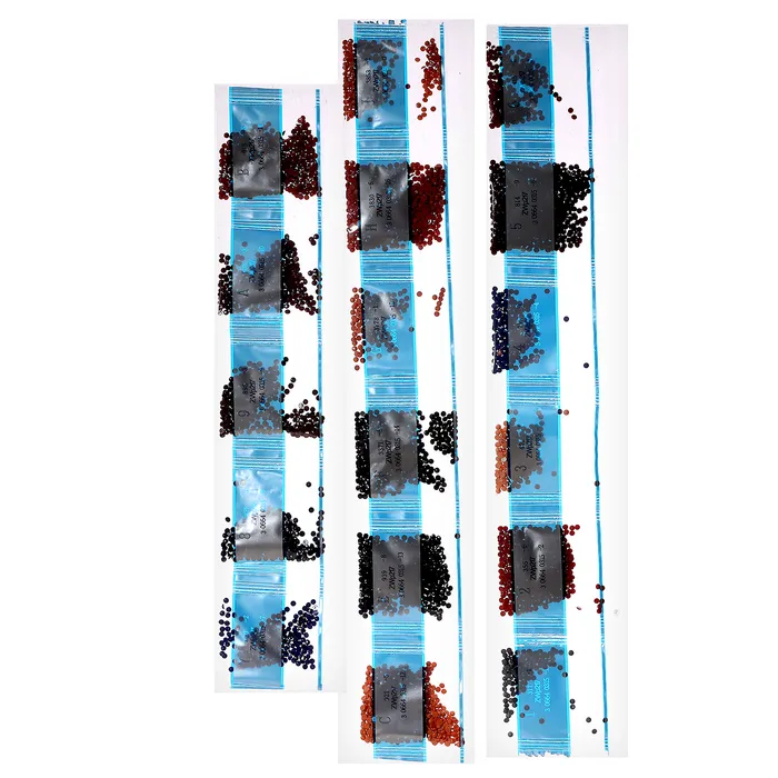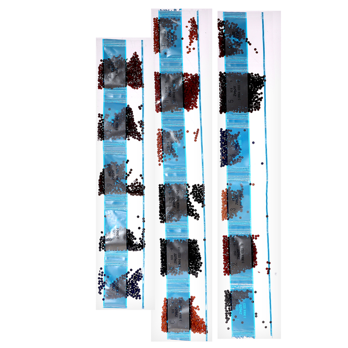- Из пакетика с номером, который соответствует схеме, отсыпьте в ёмкость немного страз.