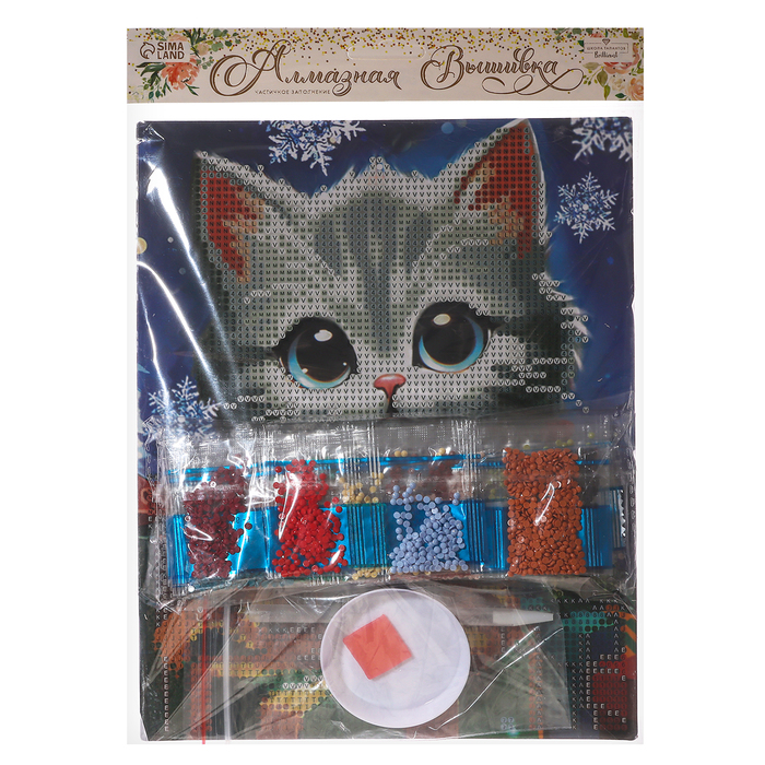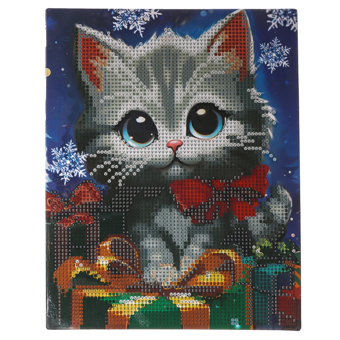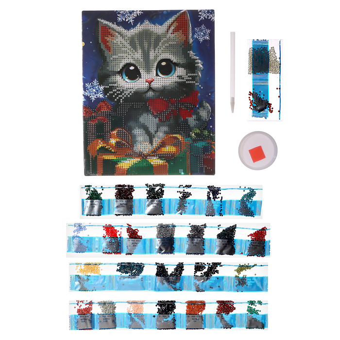 Алмазная мозаика на новый год с частичным заполнением «Котенок с подарками», 20 х 25 см, набор для творчества — Характеристики
