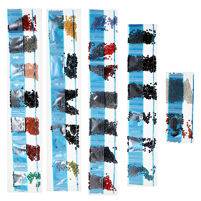 - Из пакетика с номером, который соответствует схеме, отсыпьте в ёмкость немного страз.