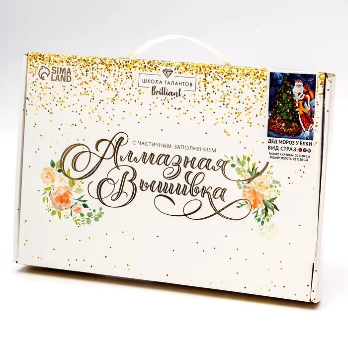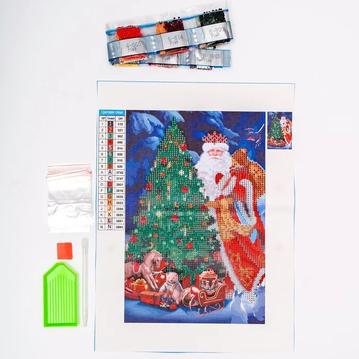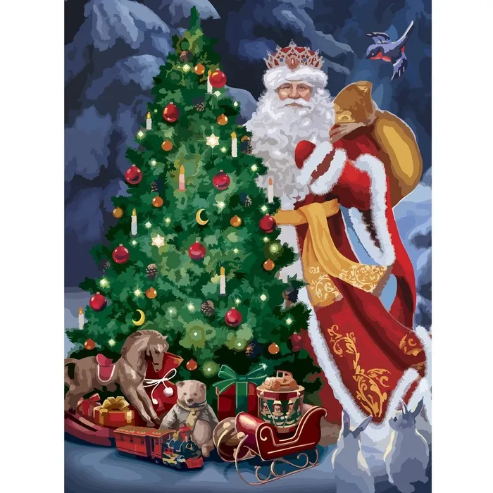 Алмазная мозаика на новый год с частичным заполнением на холсте «Дед Мороз у елки», 20 х 30 см, набор для творчества — Характеристики