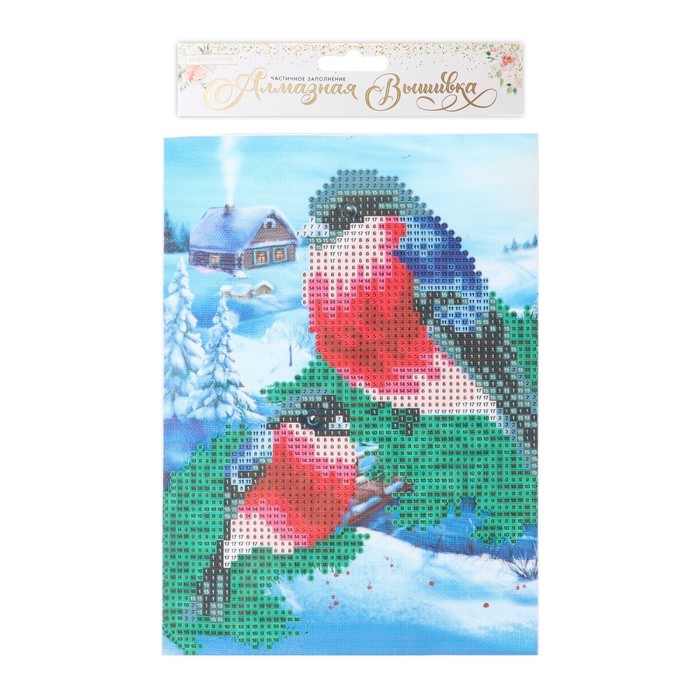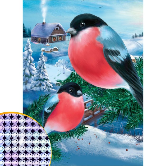 Алмазная мозаика на новый год с частичным заполнением на холсте «Снегири», 15 х 21 см, набор для творчества — Характеристики