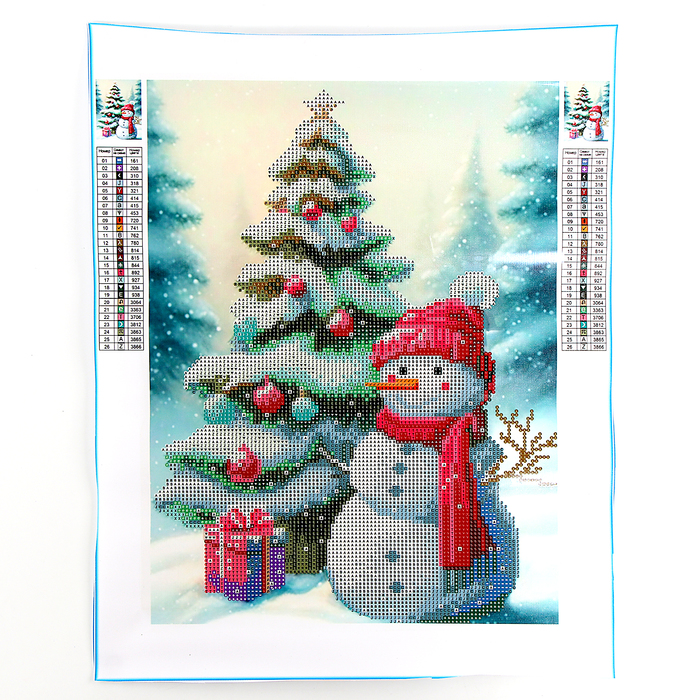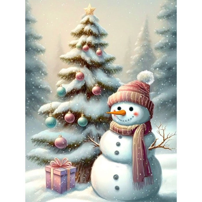 Алмазная мозаика на новый год с частичным заполнением на холсте «Снеговик», 30×40 см, набор для творчества — Характеристики