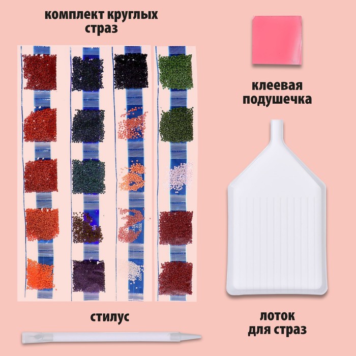 Часть картины предстоит заполнить стразами, другая часть напечатана на холсте-основе — такое изделие легче и быстрее создать. Поэтому набор подойдёт для тех, кто впервые пробует свои силы в этой технике или любит быстро добиваться результата.