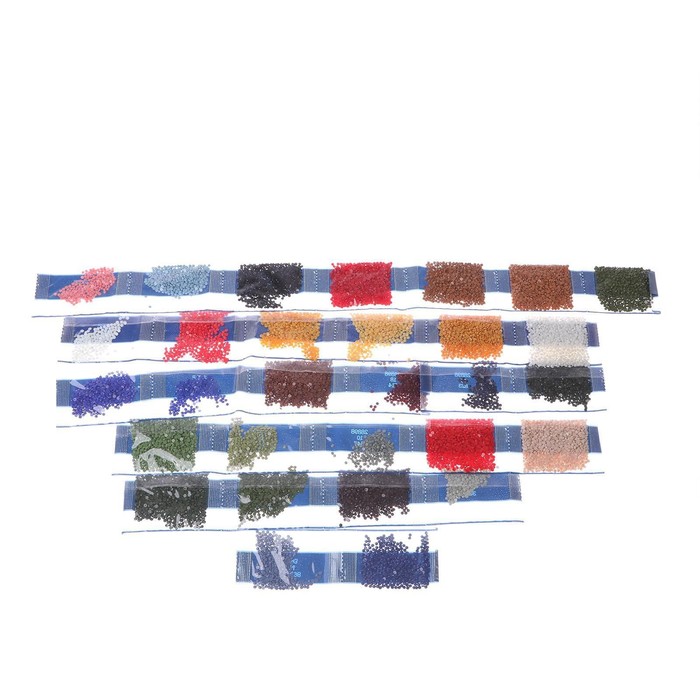 Разложите кристаллики с помощью карандаша по указанной схеме, заполнив полотно. Тканевая основа с точечным клеевым покрытием будет надёжно удерживать стразы. На картине уже обозначены необходимые оттенки.