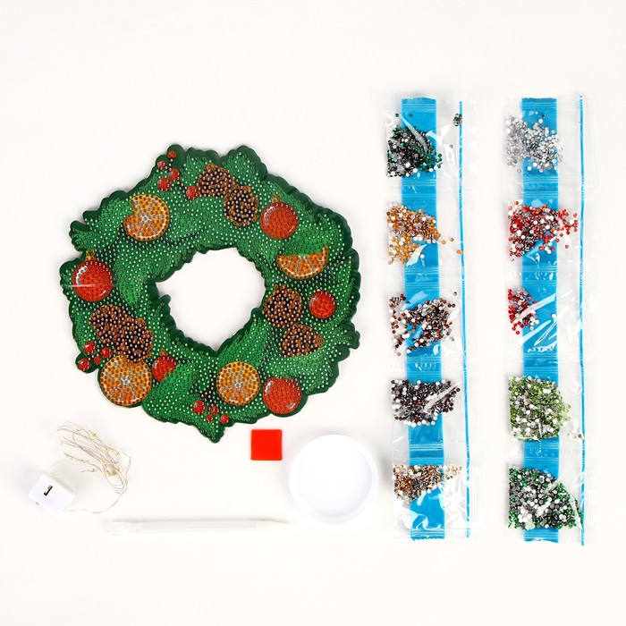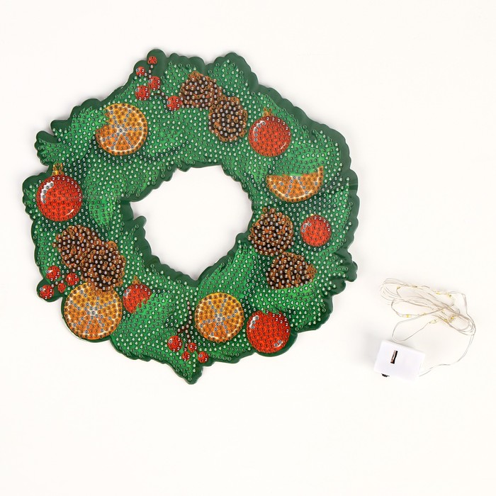 Алмазная мозаика на новый год с полным заполнением на фигурке «Волшебный венок», 20×20 см, набор для творчества — Характеристики