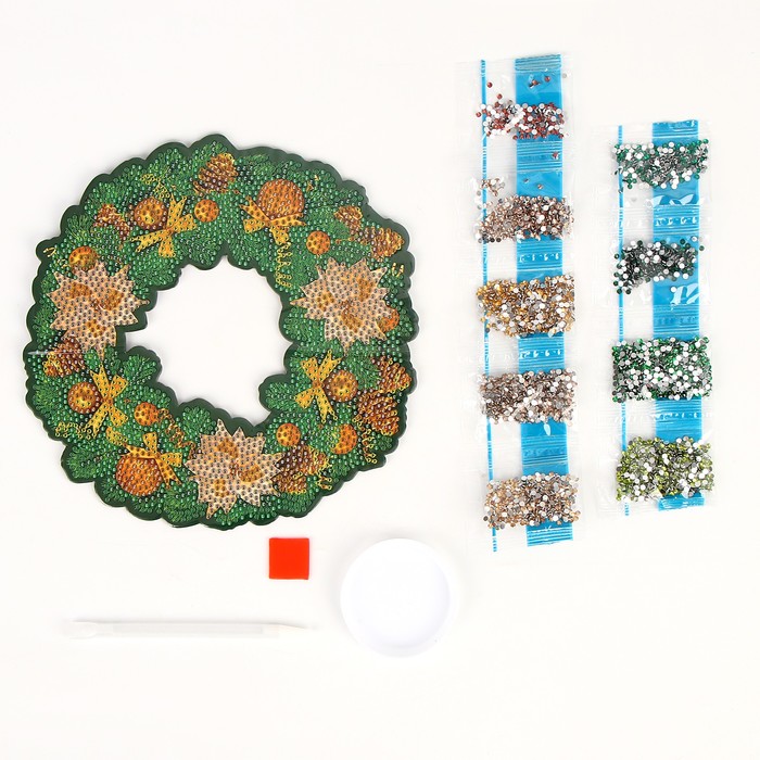 Алмазная мозаика на новый год с полным заполнением на фигурке «Зимний венок», 20 х 20 см, набор для творчества — Характеристики