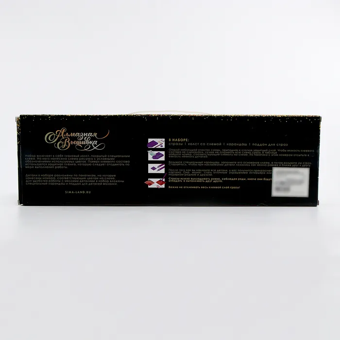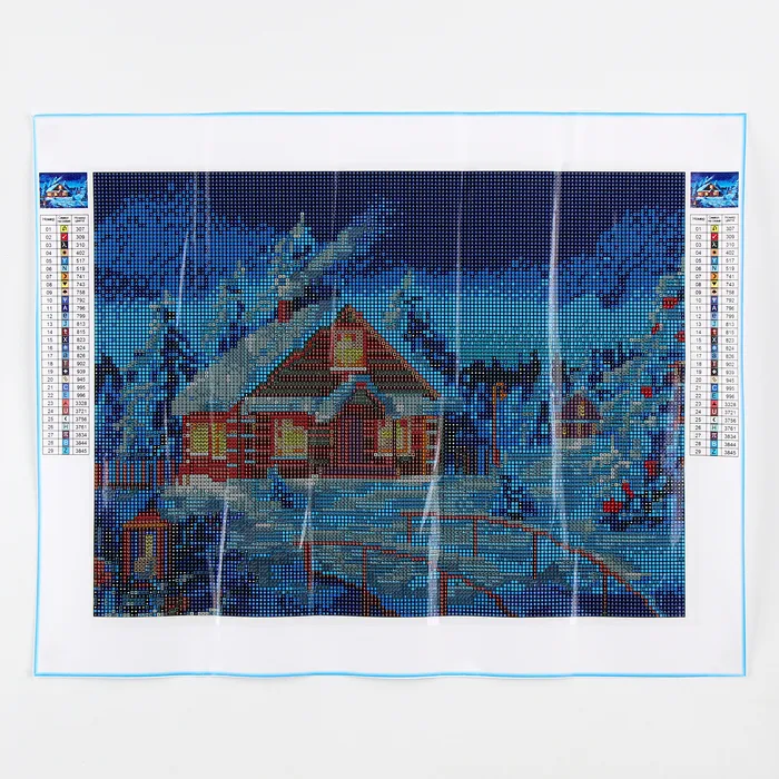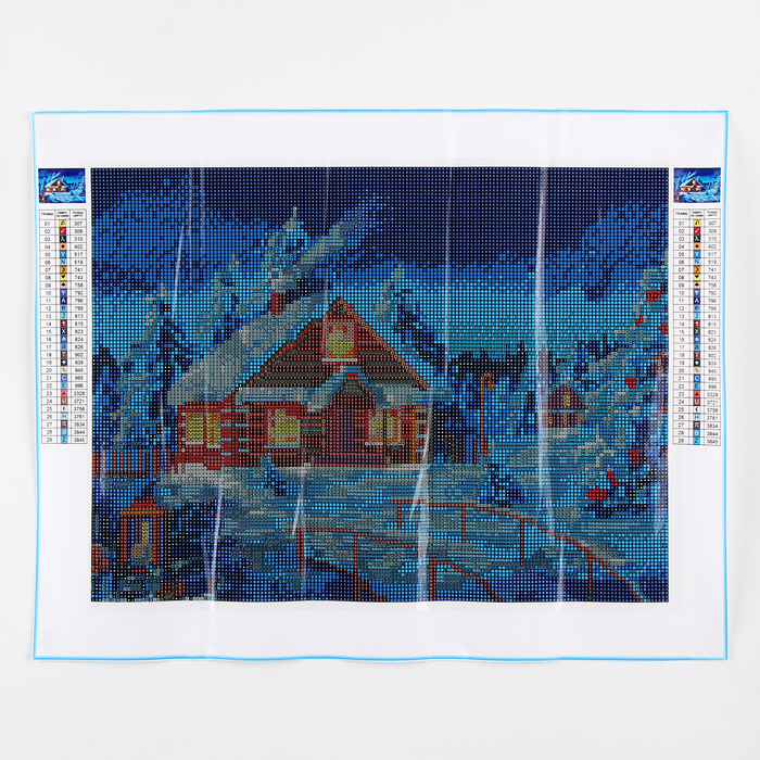 Тканевая основа имеет исключительное клеевое покрытие, которое надёжно удерживает кристаллики. С помощью пинцета вам нужно разложить их по нарисованной схеме с обозначением необходимых цветов, полностью заполнив полотно. Отдельно вас порадует то, что все цвета схемы расположены рядом с рабочей областью холста. А это значит, что схема всегда будет под рукой!