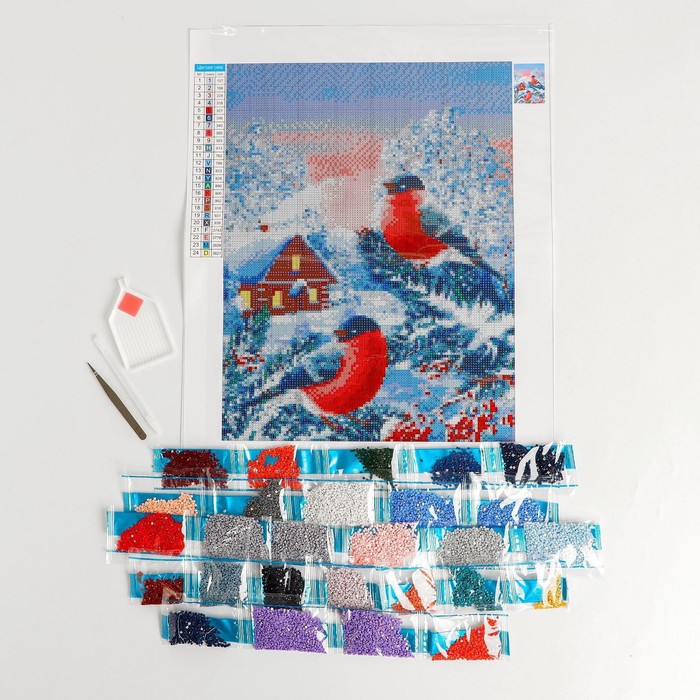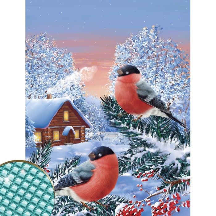 Алмазная мозаика на новый год с полным заполнением на холсте «Снегири на ветке», 30 х 40 см, набор для творчества. — Характеристики