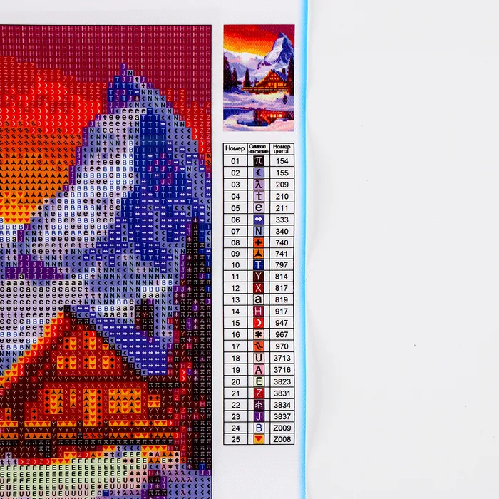 Вам предстоит разложить кристаллики карандашом по пронумерованной схеме. Холст с клеевым покрытием будет надёжно удерживать стразы.