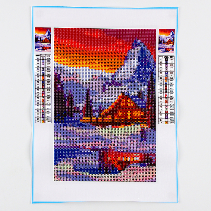 Алмазная мозаика на новый год с полным заполнением со светящимися стразами на холсте «Домик в горах», 20 х 30 см, набор для творчества — Характеристики