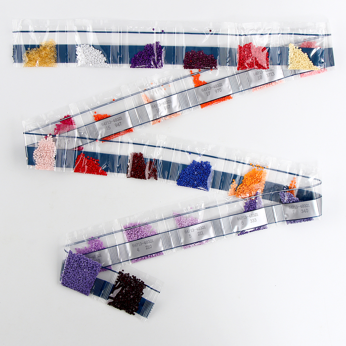 - Из пакетика с номером, который соответствует схеме, отсыпьте в ёмкость немного страз.