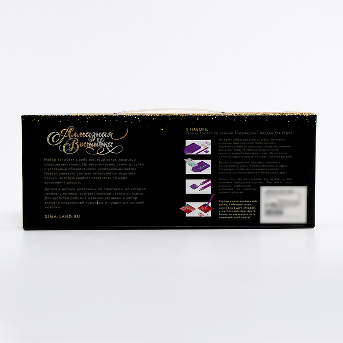 Вам предстоит разложить кристаллики карандашом по пронумерованной схеме. Холст с клеевым покрытием будет надёжно удерживать стразы.