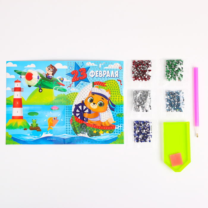 Алмазная мозаика на открытке «С Праздником 23 февраля»