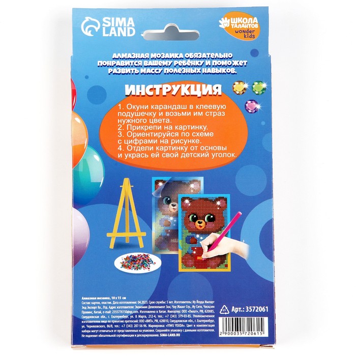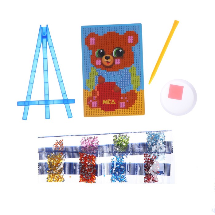 Алмазная мозаика на подставке «Мишка» для детей, размер 10 х 15 см. Набор для творчества — Характеристики