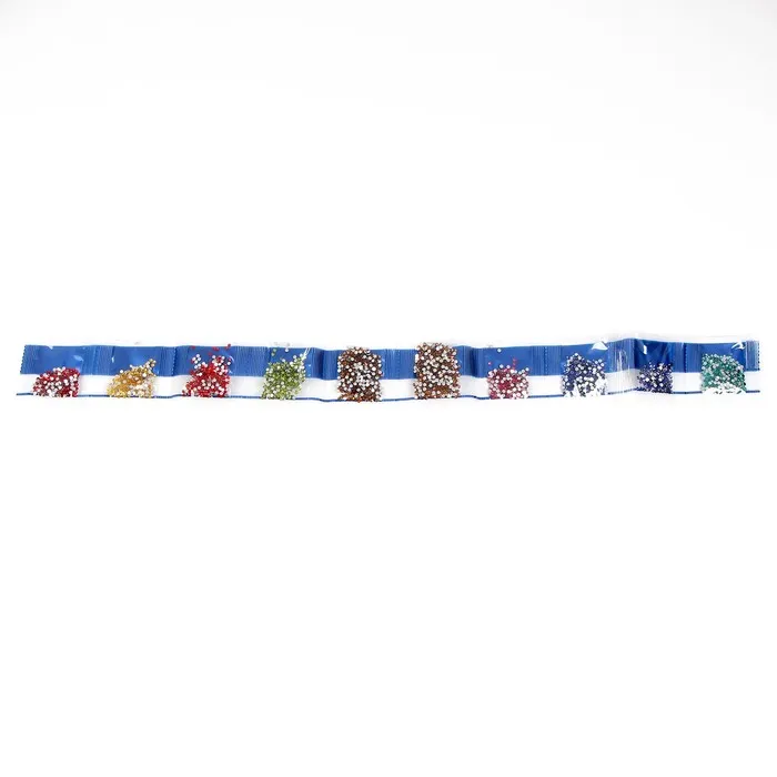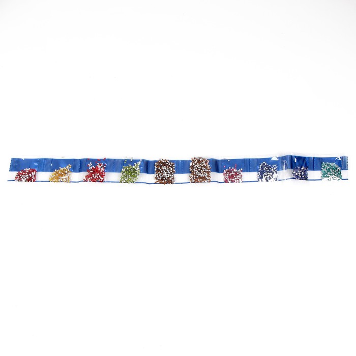 - Из пакетика с номером, который соответствует схеме, отсыпьте в ёмкость немного стразов.