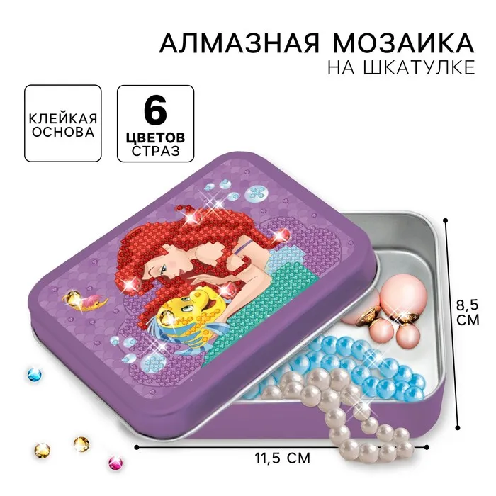 Алмазная мозаика на шкатулке, 12х9х4 см, Принцессы — Характеристики