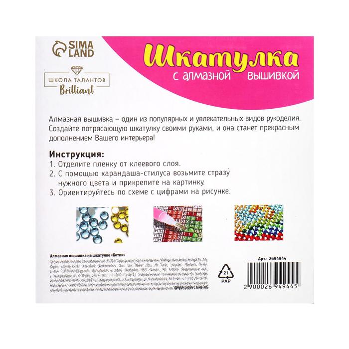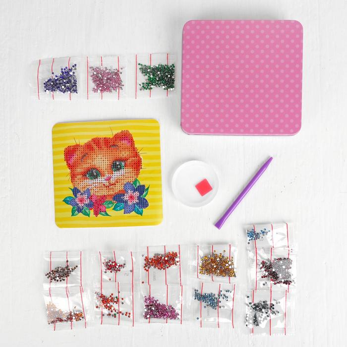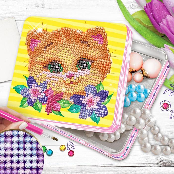 Алмазная мозаика на шкатулке с частичным заполнением «Котик», 14 х 14 см — Характеристики