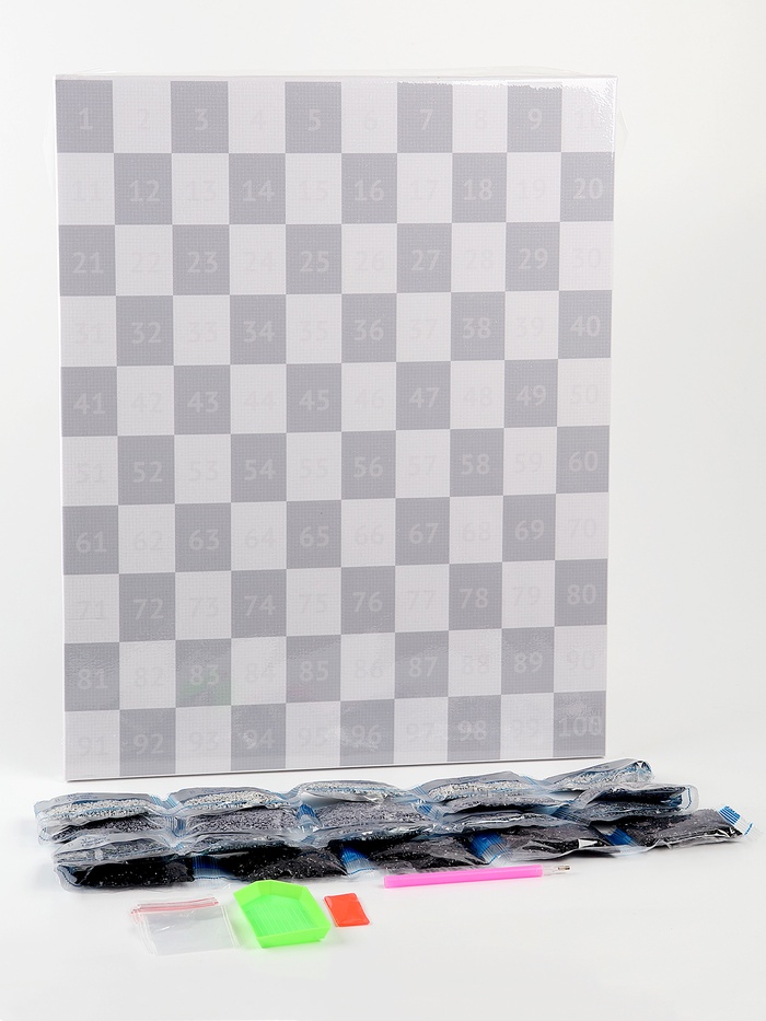 - Приступайте к сборке мозаики. Ориентируясь на схему создания картины, определите 6номер необходимого цвета (номер на схеме совпадает с номером на пакете со стразами).