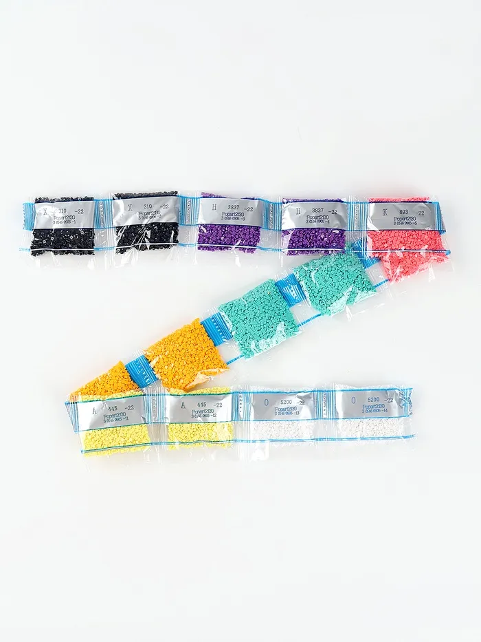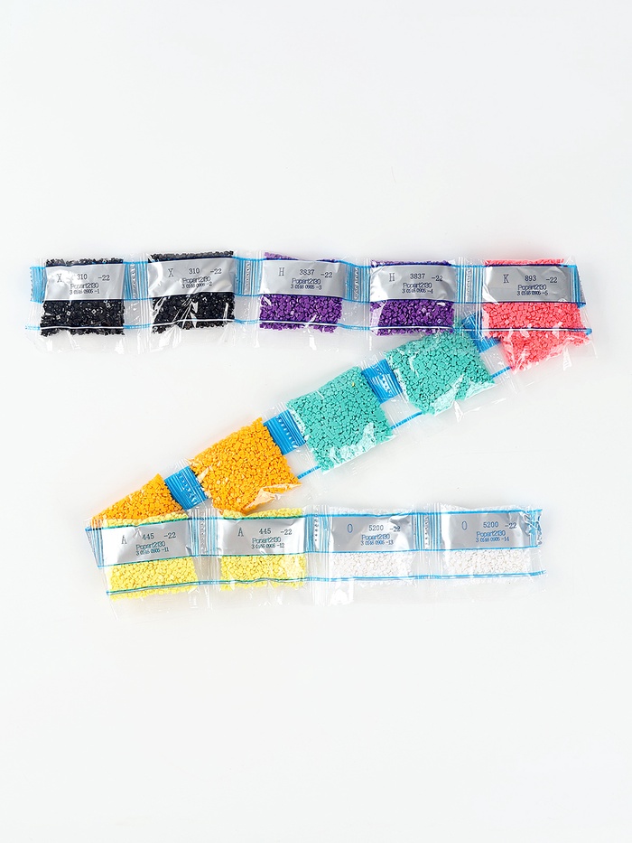 - Приступайте к сборке мозаики. Ориентируясь на схему создания картины, определите 6номер необходимого цвета (номер на схеме совпадает с номером на пакете со стразами).