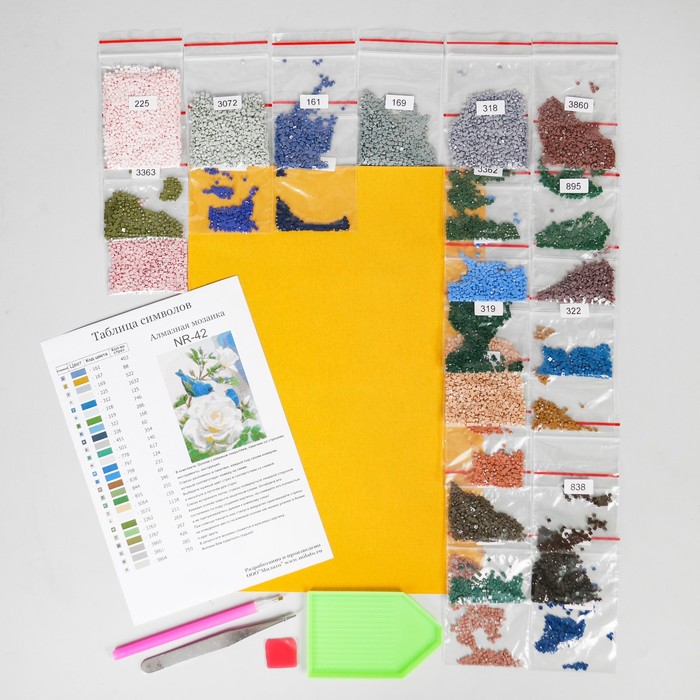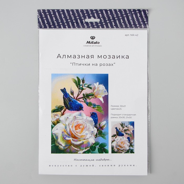 Алмазная мозаика «Птички на розах» 29,5 × 20,5 см, 25 цветов + наклейка — Характеристики
