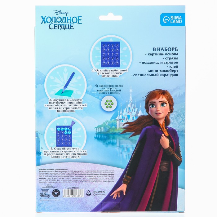 Алмазная мозаика с частичным заполнением для детей «Холодное сердце», 20×25 см — Характеристики