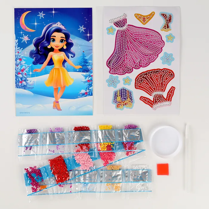 • Алмазная мозаика с частичным заполнением для детей. Наряди персонажа на новый год «Снежная красавица» — Характеристики