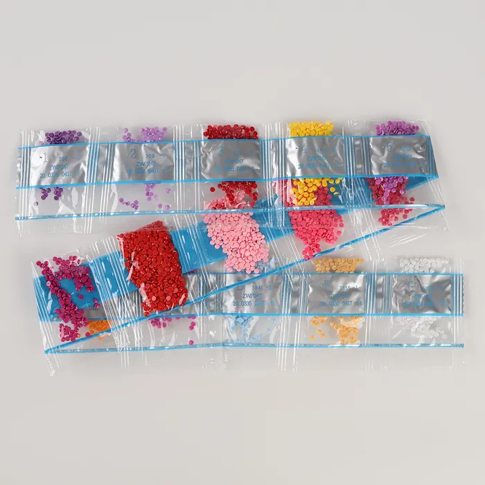 Ребёнку предстоит разложить карандашом кристаллики, постепенно заполняя рисунок элементами соответствующего цвета. Основа с клеевым покрытием будет надёжно удерживать стразы.