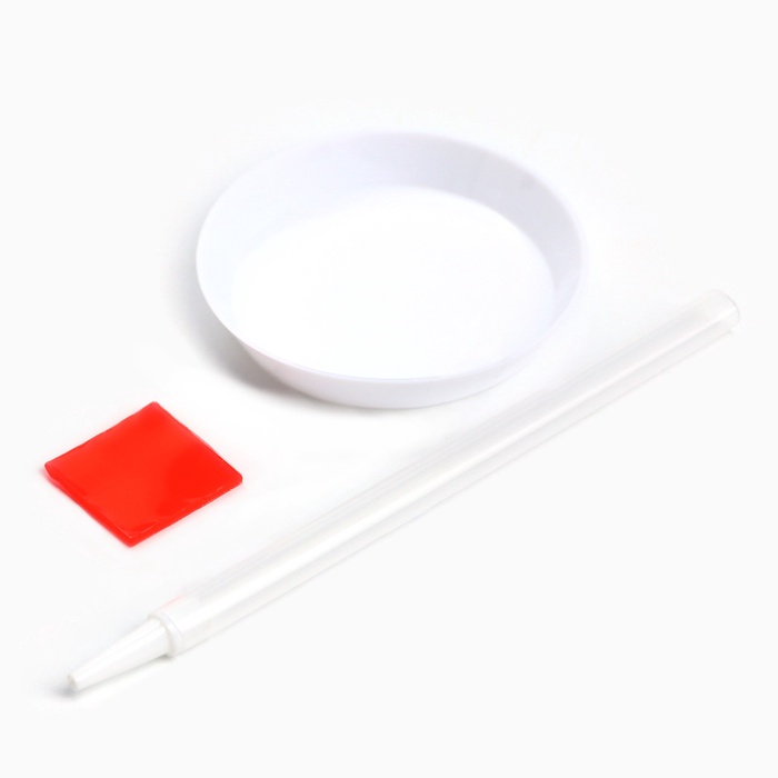 - Из пакетика с номером, который соответствует схеме, отсыпьте в ёмкость немного стразов.