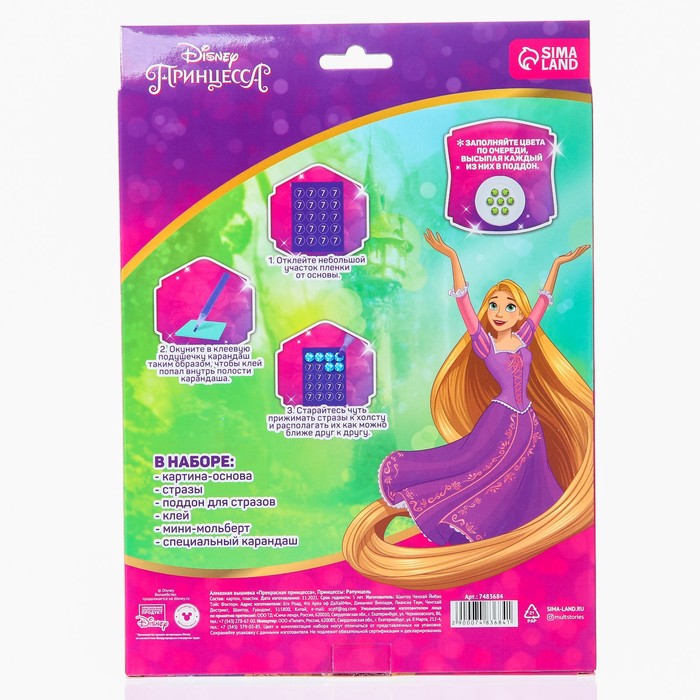 Ребёнку предстоит разложить кристаллики карандашом по пронумерованной схеме, заполнив всё полотно. Основа с клеевым покрытием будет надёжно удерживать стразы. На ней уже обозначены необходимые оттенки, а цветовая таблица расположена на упаковке.