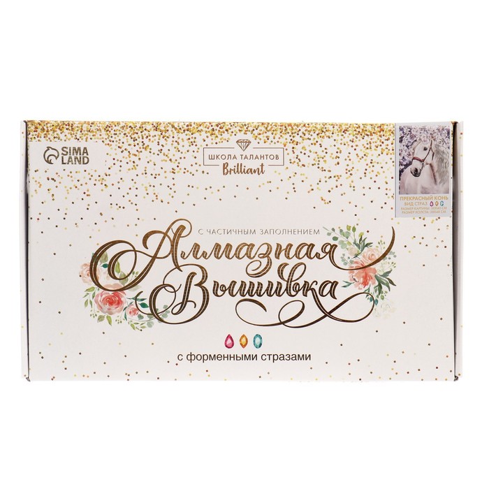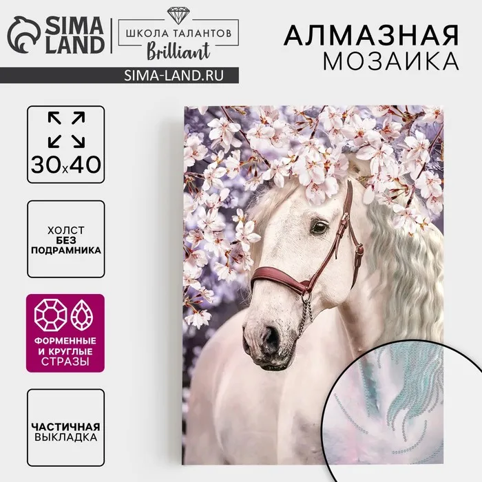 Алмазная мозаика с частичным заполнением и форменными стразами на холсте «Прекрасный конь», 30 х 40 см — Характеристики
