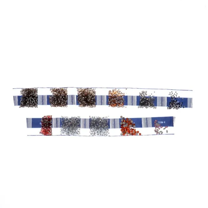 Разложите стразы с помощью карандаша по указанной схеме, заполнив полотно. Тканевая основа с точечным клеевым покрытием будет надёжно удерживать стразы. На картине уже обозначены необходимые оттенки, а цветовая таблица расположена рядом с рабочей областью холста.