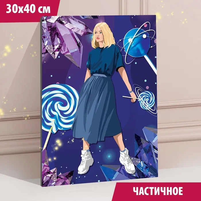 Алмазная мозаика с частичным заполнением «Космическая девушка» без рамы 30×40 см — Характеристики