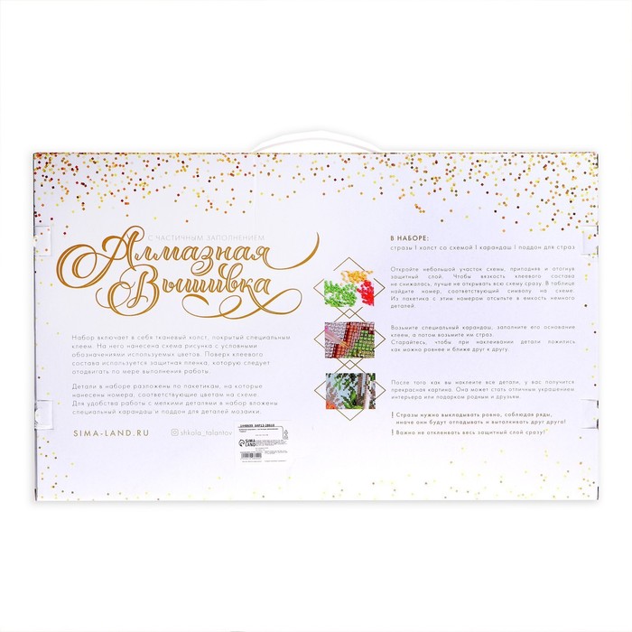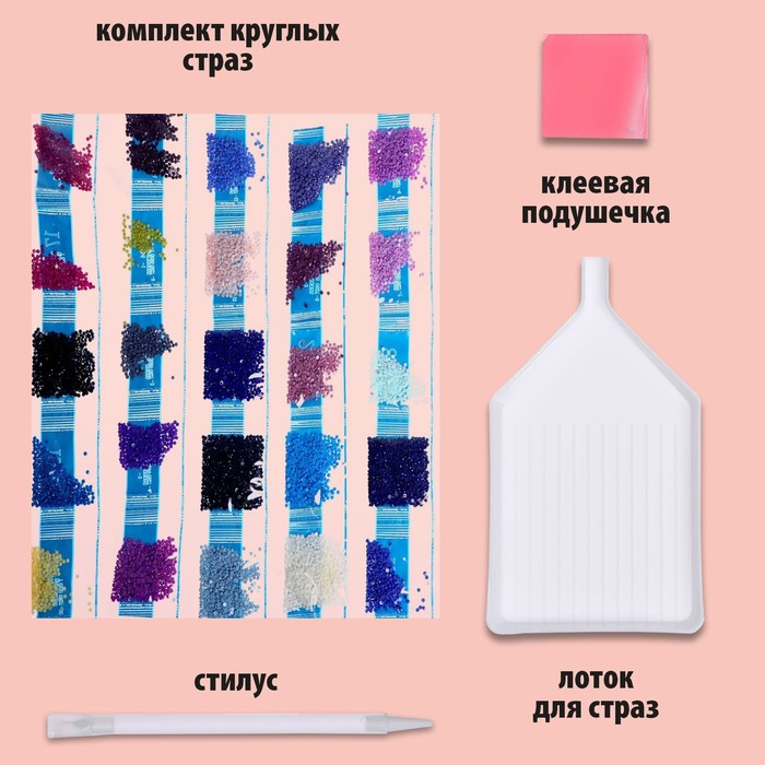 Часть изображения предстоит заполнить стразами, другая часть напечатана на холсте-основе. Поэтому набор подойдёт для тех, кто впервые пробует свои силы в этой технике или любит быстро добиваться результата.