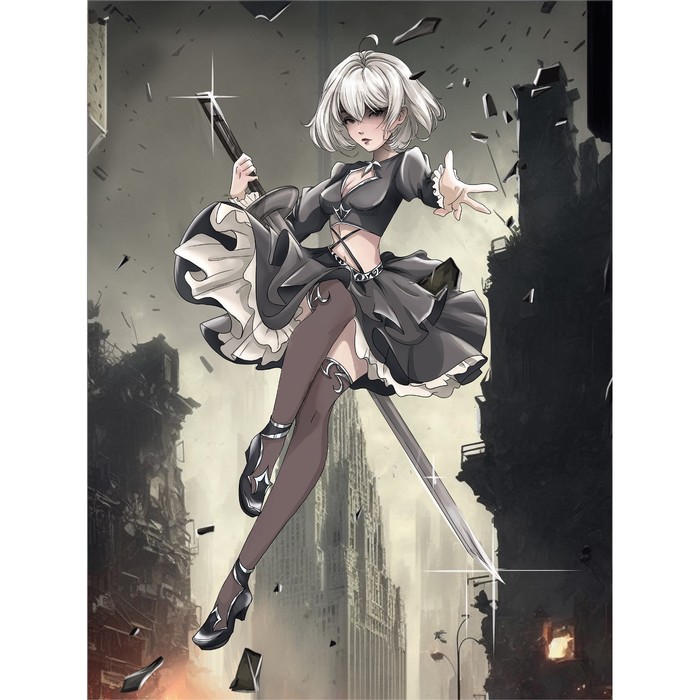 Алмазная мозаика с частичным заполнением на холсте «Девушка с клинком»‎, 20 х 30 см — Характеристики