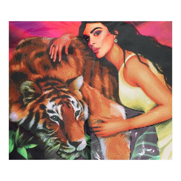 Алмазная мозаика с частичным заполнением на холсте «Девушка с тигром», 50×60 см — Характеристики