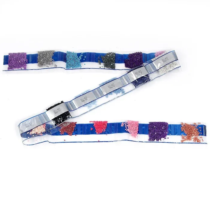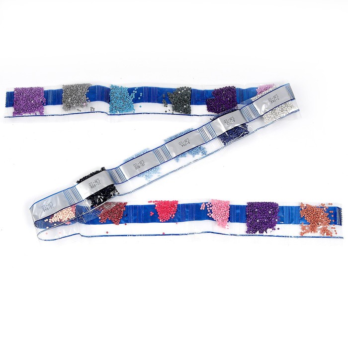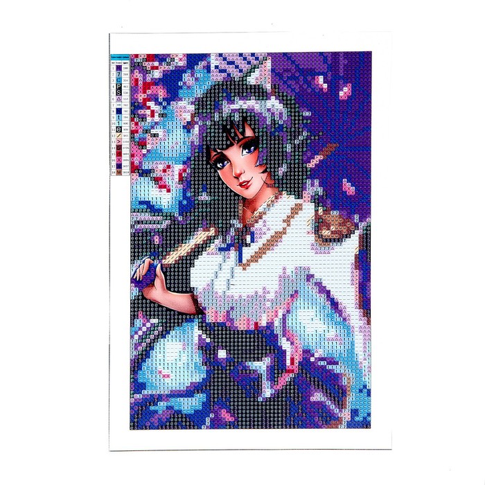 Разложите стразы с помощью карандаша по указанной схеме, заполнив полотно. Тканевая основа с точечным клеевым покрытием будет надёжно удерживать стразы. На картине уже обозначены необходимые оттенки, а цветовая таблица расположена рядом с рабочей областью холста.