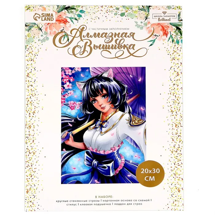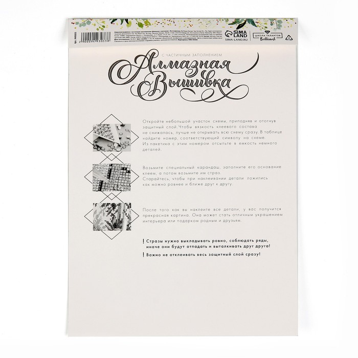 Часть изображения предстоит заполнить стразами, другая часть напечатана на холсте-основе. Поэтому набор подойдёт для тех, кто впервые пробует свои силы в этой технике или любит быстро добиваться результата.