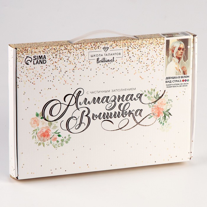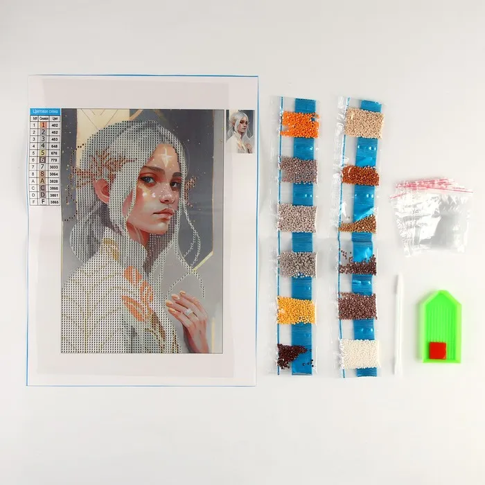 Алмазная мозаика с частичным заполнением на холсте «Девушка в белом»‎, 20 х 30 см — Характеристики