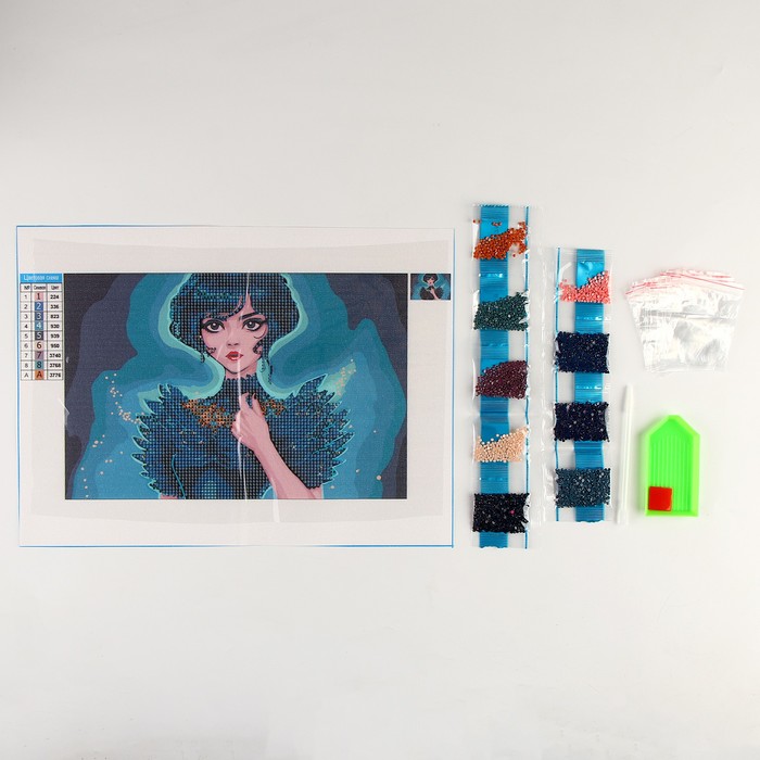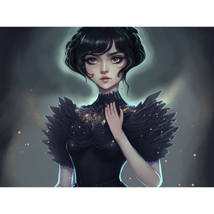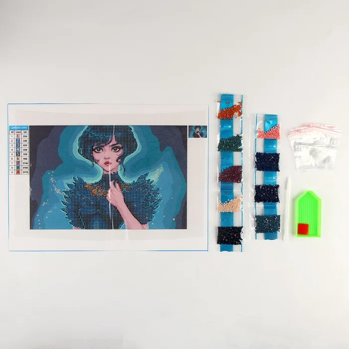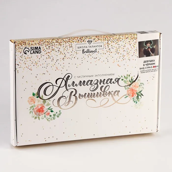 Алмазная мозаика с частичным заполнением на холсте «Девушка в черном» 20 х 30 см — Характеристики