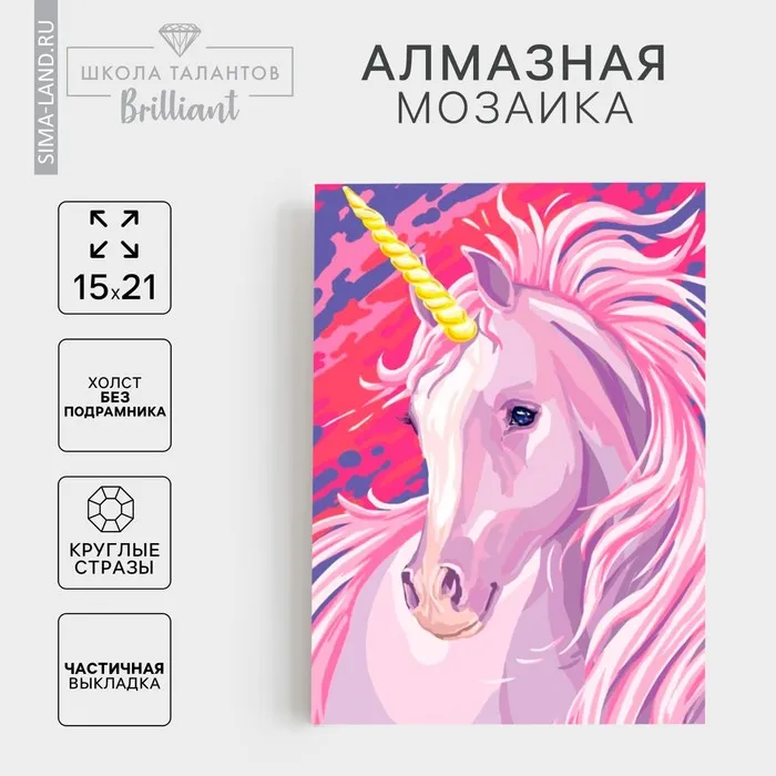 Алмазная мозаика с частичным заполнением на холсте «Единорог», 15 х 21 см — Характеристики