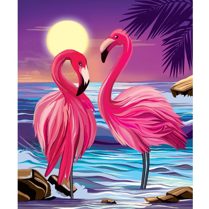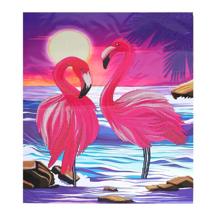 Алмазная мозаика с частичным заполнением на холсте «Фламинго на закате», 50×60 см — Характеристики